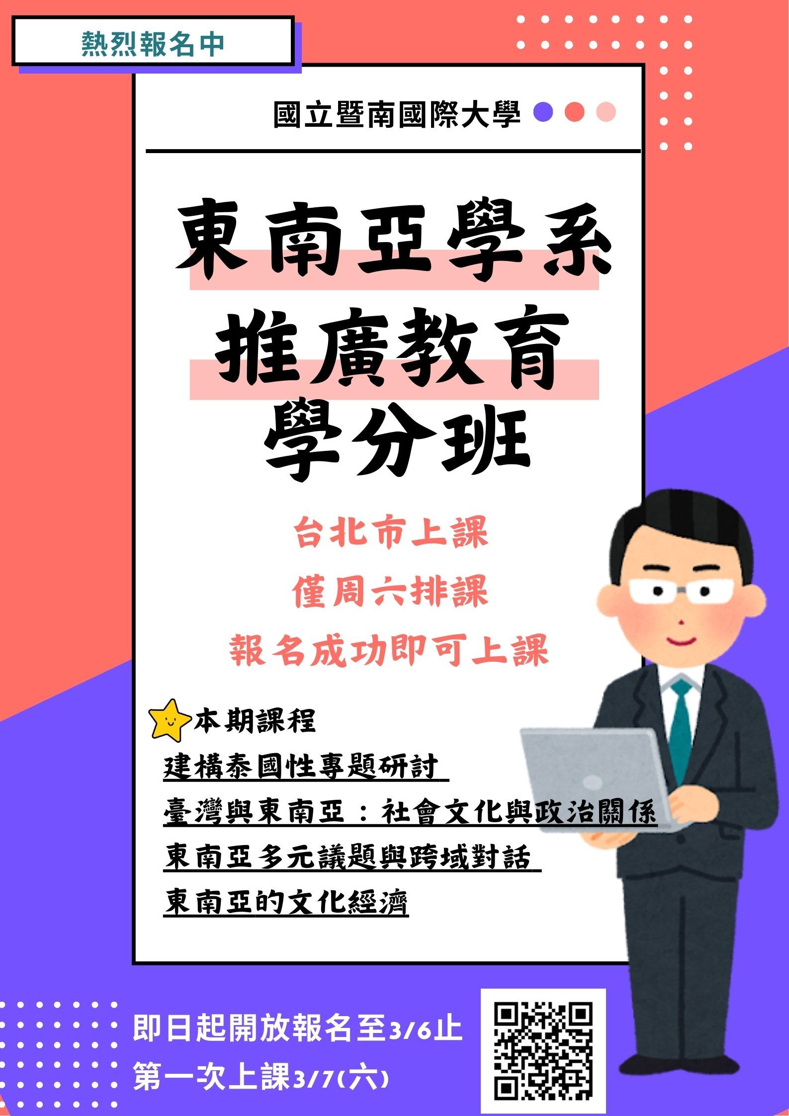 【開始招生】1142推廣教育學分班